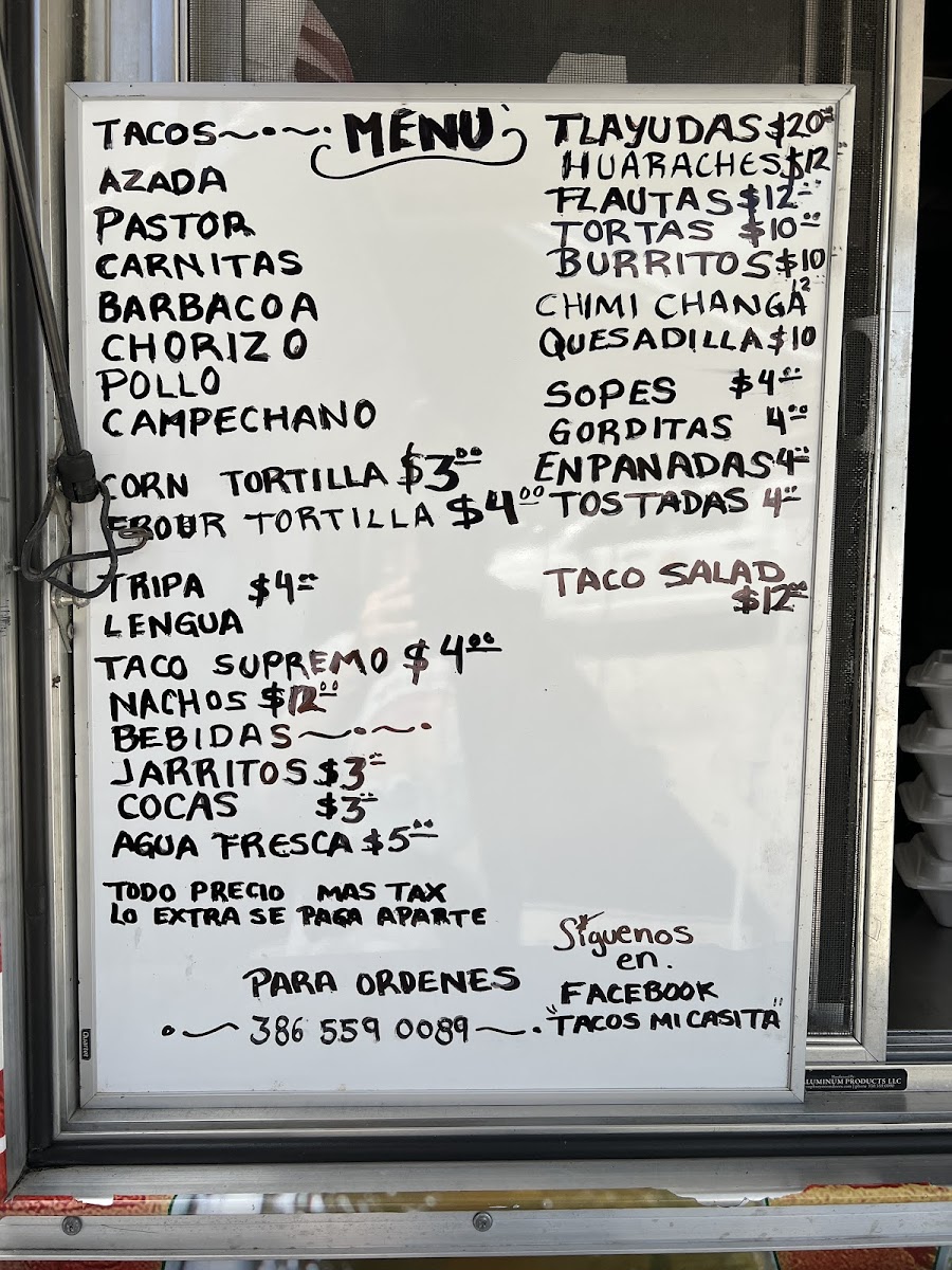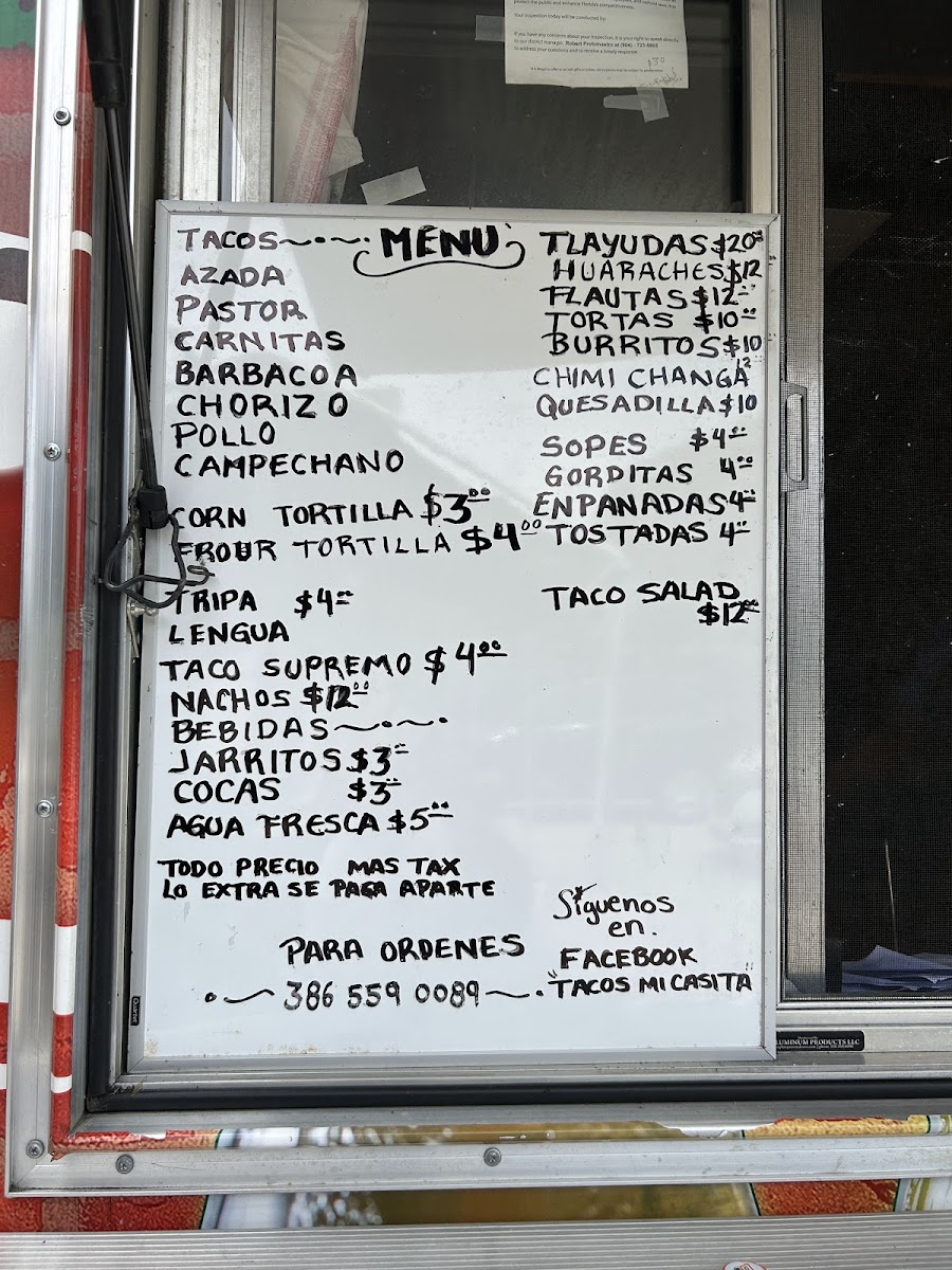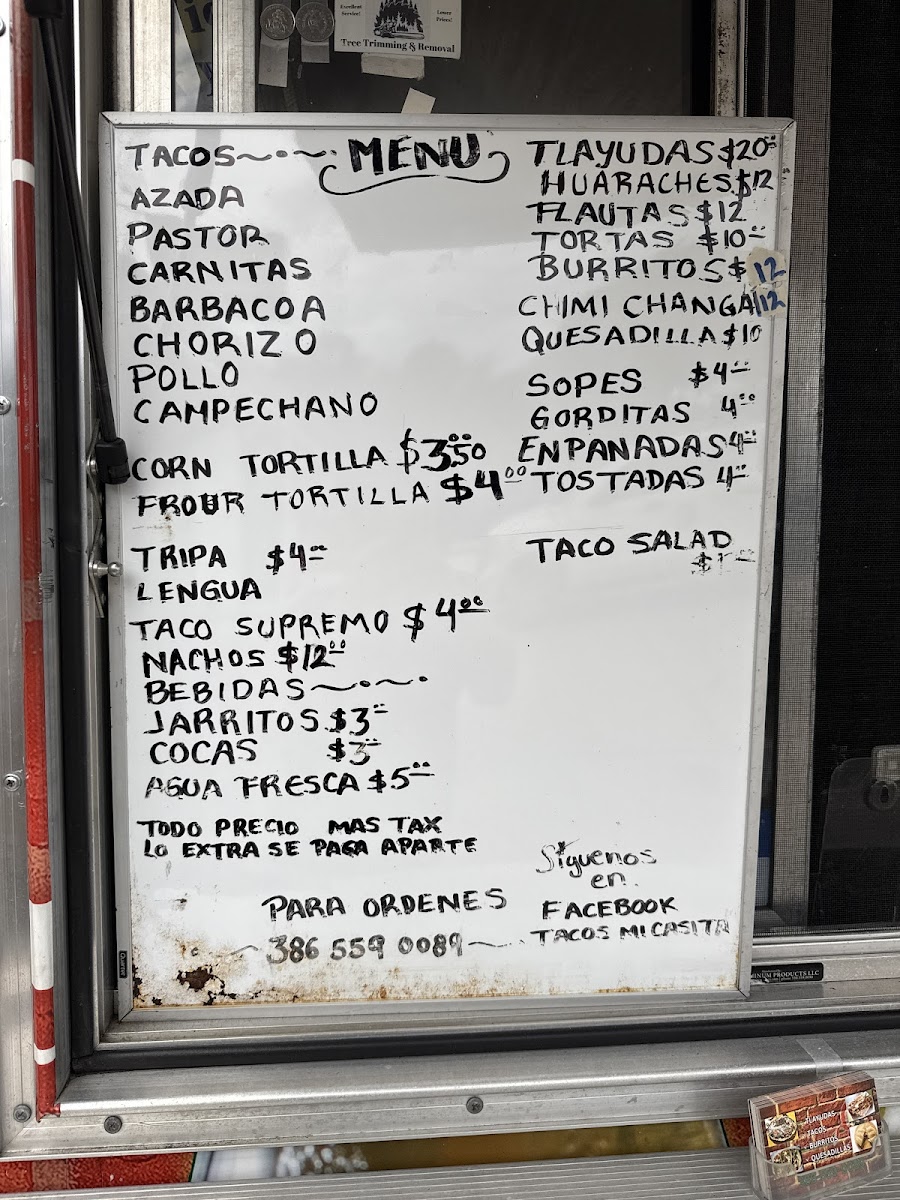 From a reviewer’s perspective, the menu at Tacos Mi Casita, located at 248 US-17, East Palatka, FL 32131, delivers a focused yet satisfying snapshot of authentic Mexican street food. Rather than overwhelming diners with endless options, the restaurant centers its menu around a selection of well-chosen proteins that highlight traditional flavors and careful preparation. Staples like Azada bring a familiar, comforting appeal with their grilled, savory character, while Pastor stands out for its bold seasoning and slightly sweet, marinated profile that feels both classic and indulgent. For those who appreciate slow-cooked richness, CarnitasBarbacoa offers deep, tender flavors that reflect time-honored cooking methods and a respect for tradition. Rounding out the lineup, Chorizo adds a spicy, robust note that balances the menu with its unmistakable smoky kick. Taken together, these items form a cohesive menu that emphasizes quality over quantity, making it clear that Tacos Mi Casita prioritizes authenticity and consistency. As a conclusion to the overall menu experience, the selection feels thoughtfully curated-each item contributes its own personality while collectively reinforcing the restaurant’s identity as a reliable destination for genuine, flavorful tacos rooted in Mexican culinary tradition.